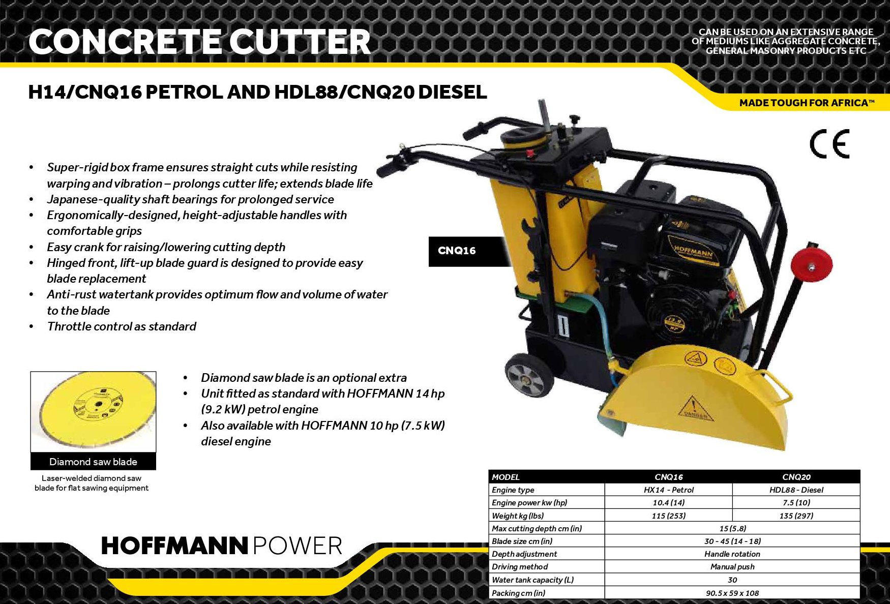 - Unit fitted as standard with HOFFMANN 14 hp (9.2 kW) petrol engine